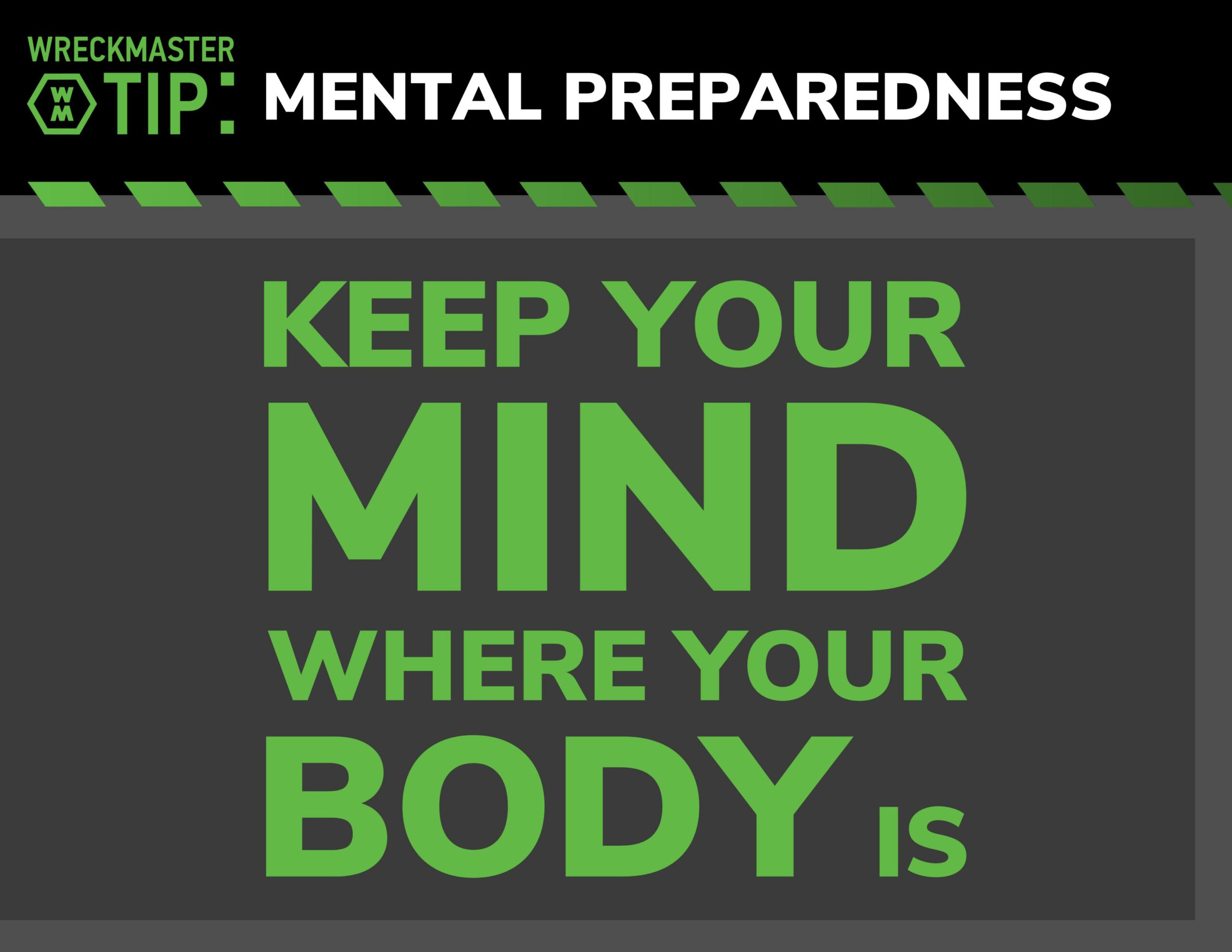 Keeping a clear head is essential when providing quality customer service and managing risks while on scene. Maintaining complete focus and attention to the task at hand will not only keep you and those around you safe, it can save your life. WreckMaster recommends remembering the following phrase: