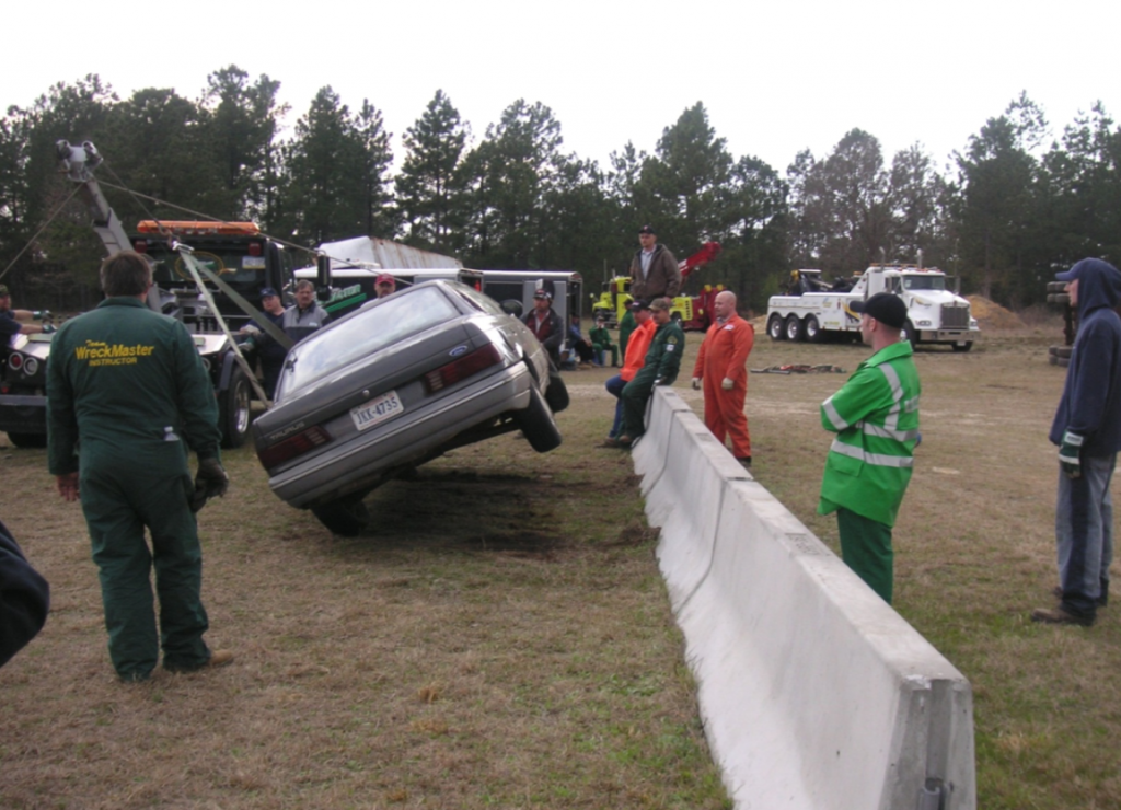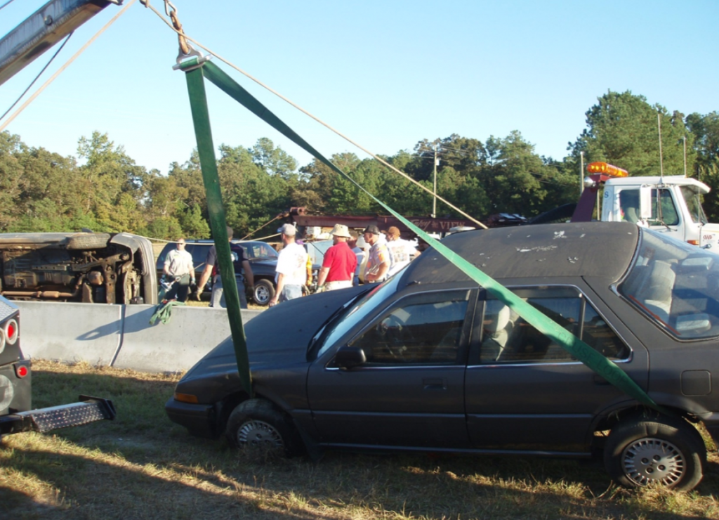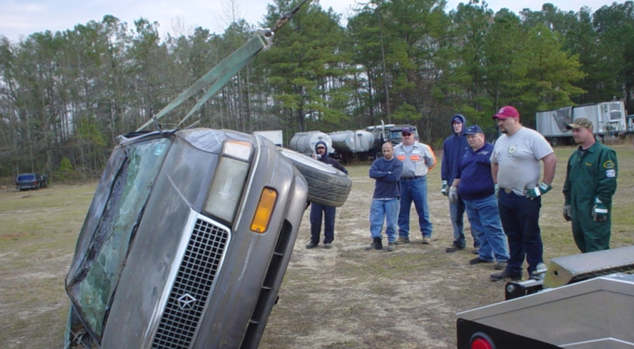 Once you know that you are pulling it out straight, you will then winch in with your winch line, and when you run out of wire rope- you will boom up. As you boom up, this will pull the bottom of the car up and out.